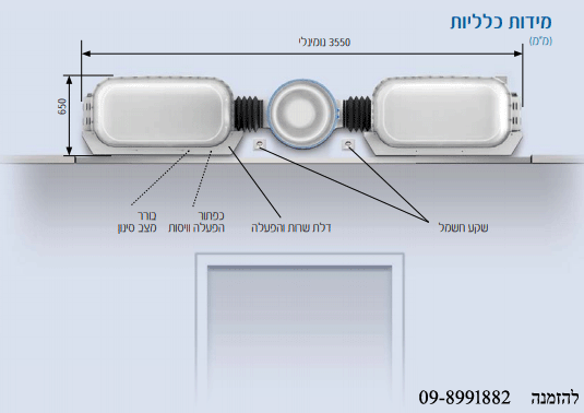 - בהתקנה מעל תקרה אקסוטית - להשאיר פתח שירות והפעלה במידות 100X220 ס"מ סביב המערכת. אפשר להתקין כיסוי שניתן לפתיחה.